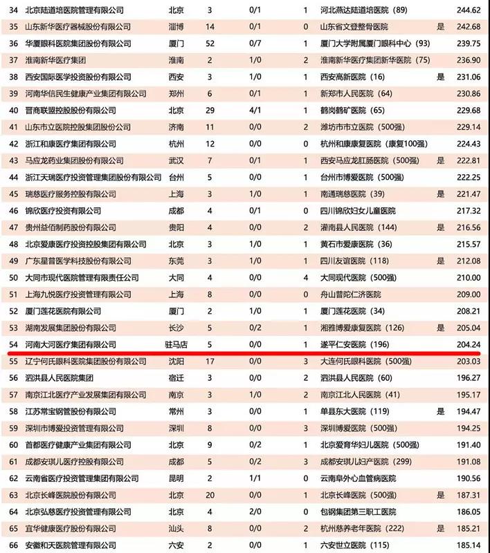 近日,香港艾力彼醫(yī)院管理研究中心發(fā)布“2018屆社會(huì)辦醫(yī)·醫(yī)院集團(tuán)100強(qiáng)”榜單,集團(tuán)成員企業(yè)河南大河醫(yī)療集團(tuán)有限公司位居第54位。在同期發(fā)布的“2018屆社會(huì)辦醫(yī)·民營(yíng)醫(yī)院500強(qiáng)”榜單中,大河醫(yī)療旗下的遂平仁安醫(yī)院位居第196位。