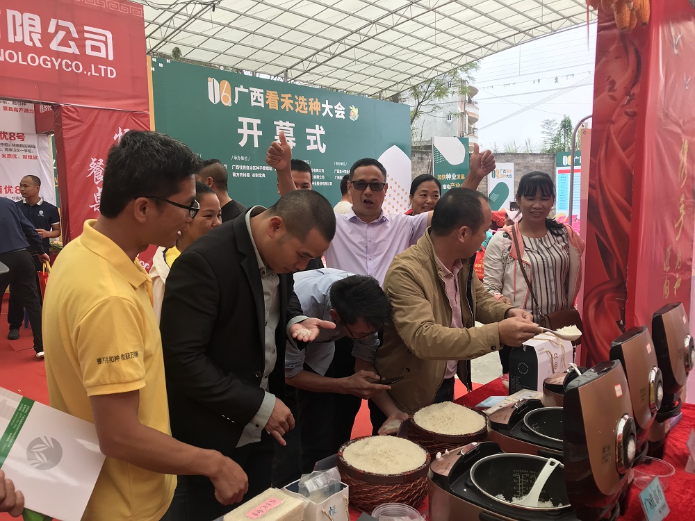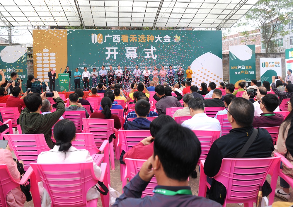 10月25日,廣西第十六屆“看禾選種”大會開幕式在廣西南寧隆重舉行,超600個優(yōu)質(zhì)水稻玉米品種在田間飄香,向近千名來自各地的專業(yè)觀眾亮出完美身姿。開幕式會場,匯集了品牌企業(yè)展覽、重點推介品種授牌、優(yōu)質(zhì)稻米品嘗、優(yōu)良品種田間展示等多項精彩紛呈的活動。集團成員企業(yè)廣西兆和種業(yè)有限公司董事長何懿帶領(lǐng)營銷團隊20余人精心組織推介公司各品種,獲得主辦單位高度贊揚。