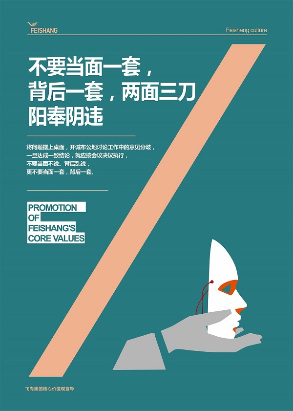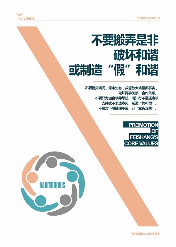 希望全體員工愛崗敬業、大愛無私、積極陽光,努力踐行飛尚集團核心價值觀,堅決抵制不良行為,唾棄不良風氣,共同營造風清氣正的企業氛圍。