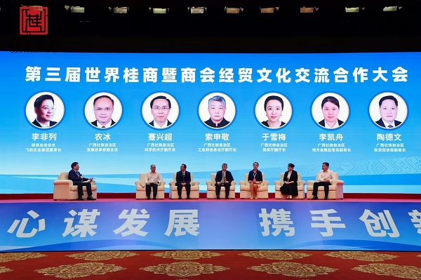 7月18日,廣西壯族自治區黨委、政府在南寧舉行第三屆世界桂商暨商會經貿文化交流合作大會,以“同心謀發展、攜手創新局”為主題,舉行重點產業鏈項目簽約儀式、民營企業座談會、桂商高質量發展論壇、經貿文化交流會議等系列活動,共商合作、共謀發展。