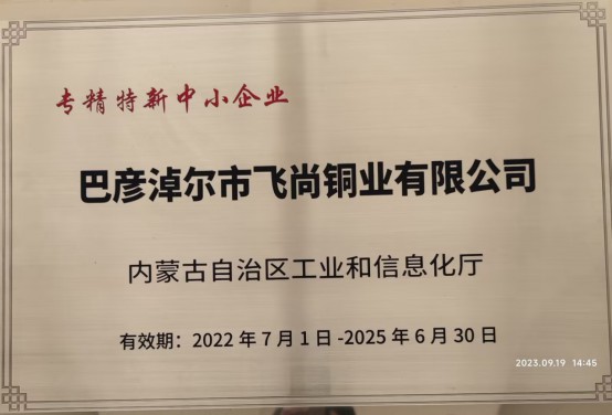 飛尚銅業(yè)于2016年、2019年、2022年多次被自治區(qū)授予“高新技術(shù)企業(yè)”;2021年與國內(nèi)高校合作,獲批成立“博士科研工作站”,同年被市科技局授予市級“企業(yè)技術(shù)中心”;2022年獲得自治區(qū)工信廳授予“綠色工廠”“專精特新企業(yè)”;2023年授予省級“企業(yè)技術(shù)中心”。另外,近三年多來,累計獲得政府技術(shù)獎勵資金200多萬元。各項技術(shù)進步與創(chuàng)新項目為企業(yè)降本或增收發(fā)揮了重要作用,每年為企業(yè)創(chuàng)造效益至少3000萬元以上。