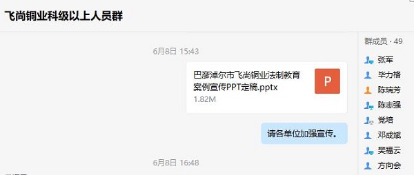 6月8日,公司制作法制教育宣傳PPT 進行逐級學習,對在公司內部查處的違法行為進行通報,對在崗位上勇于發現并舉報損害公司利益的員工進行獎勵與宣傳;